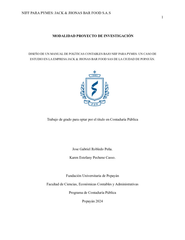 DISEÑO DE UN MANUAL DE POLÍTICAS CONTABLES BAJO NIIF PARA PYMES: UN CASO DE ESTUDIO EN LA EMPRESA JACK & JHONAS BAR FOOD SAS DE LA CIUDAD DE POPAYÁN