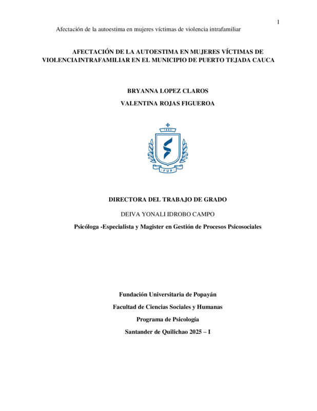 AFECTACIÓN DE LA AUTOESTIMA EN MUJERES VÍCTIMAS DE VIOLENCIA INTRAFAMILIAR EN EL MUNICIPIO DE PUERTO TEJADA CAUCA