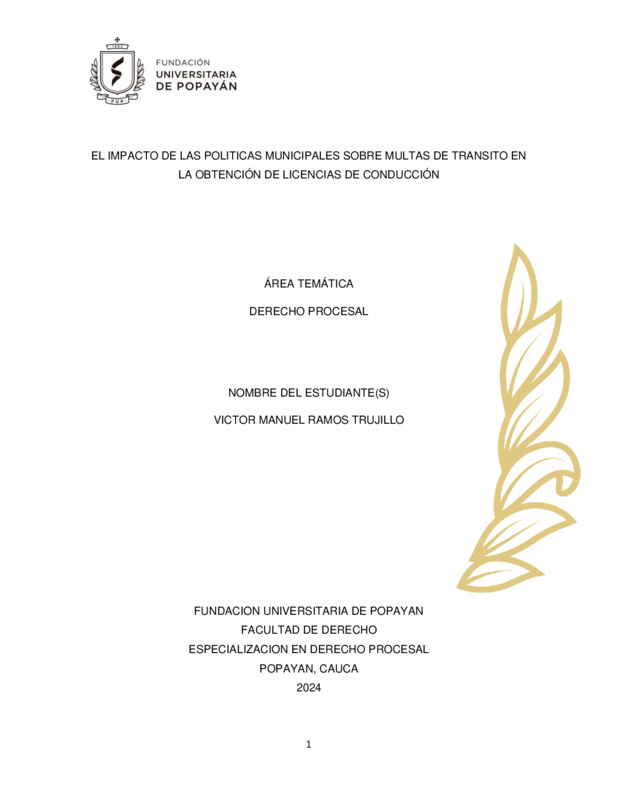 EL IMPACTO DE LAS POLITICAS MUNICIPALES SOBRE MULTAS DE TRANSITO EN LA OBTENCIÓN DE LICENCIAS DE CONDUCCIÓN
