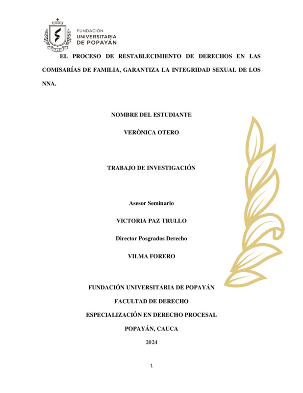 EL PROCESO DE RESTABLECIMIENTO DE DERECHOS EN LAS COMISARÍAS DE FAMILIA, GARANTIZA LA INTEGRIDAD SEXUAL DE LOS NNA