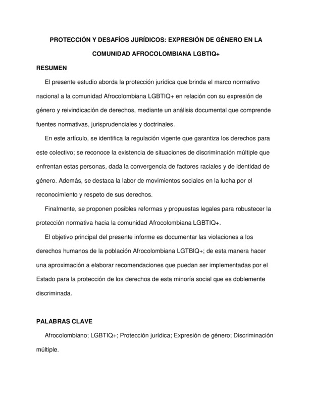 PROTECCIÓN Y DESAFÍOS JURÍDICOS: EXPRESIÓN DE GÉNERO EN LA COMUNIDAD AFROCOLOMBIANA LGTBIQ+