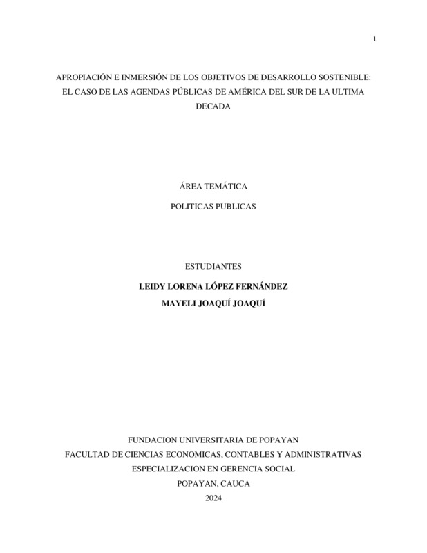 APROPIACIÓN E INMERSIÓN DE LOS OBJETIVOS DE DESARROLLO SOSTENIBLE: EL CASO DE LAS AGENDAS PÚBLICAS DE AMÉRICA DEL SUR DE LA ULTIMA DECADA