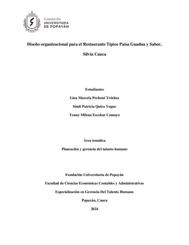 DISEÑO ORGANIZACIONAL PARA EL RESTAURANTE TÍPICO PAISA GUADUA Y SABOR, SILVIA CAUCA