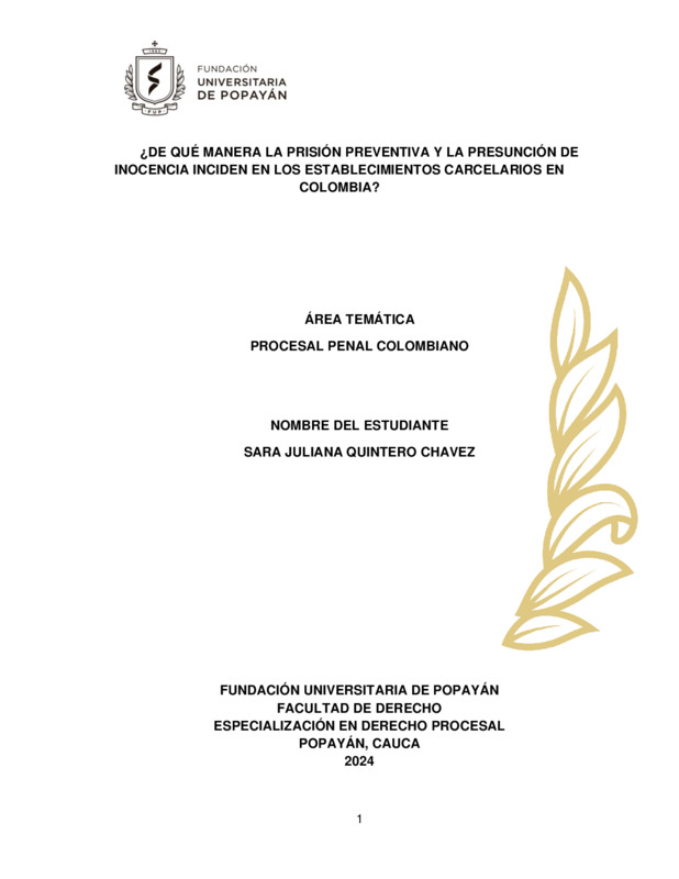 ¿DE QUÉ MANERA LA PRISIÓN PREVENTIVA Y LA PRESUNCIÓN DE INOCENCIA INCIDEN EN LOS ESTABLECIMIENTOS CARCELARIOS EN COLOMBIA?