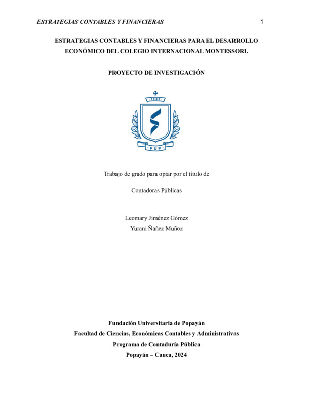 ESTRATEGIAS CONTABLES Y FINANCIERAS PARA EL DESARROLLO ECONÓMICO DEL COLEGIO INTERNACIONAL MONTESSORI