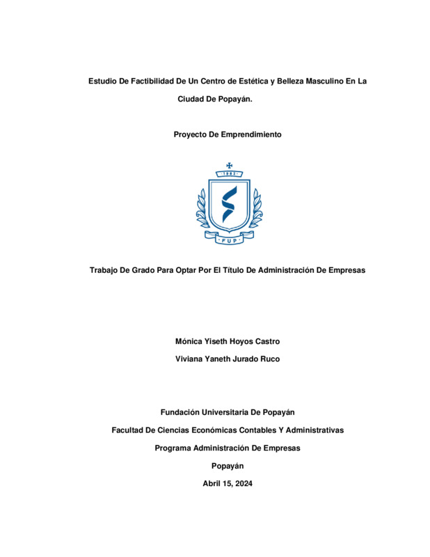 LA FACTIBILIDAD DE CREAR UN CENTRO DE ESTÉTICA Y BELLEZA MASCULINA EN LA CIUDAD DE POPAYÁN, ORIENTADA AL CUIDADO PERSONAL Y SERVICIO DE BELLEZA PARA HOMBRES