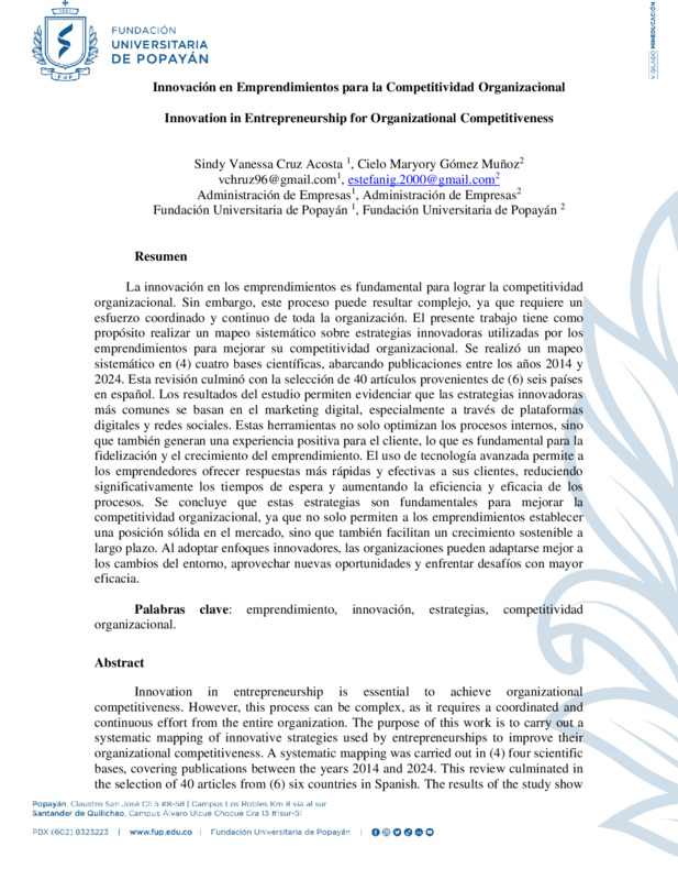 INNOVACIÓN EN EMPRENDIMIENTOS PARA LA COMPETITIVIDAD ORGANIZACIONAL
