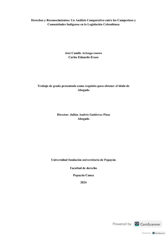 DERECHOS Y RECONOCIMIENTOS: UN ANÁLISIS COMPARATIVO ENTRE CAMPESINOS Y COMUNIDADES INDÍGENAS EN LA LEGISLACIÓN COLOMBIANA