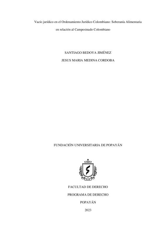 VACÍO JURÍDICO EN EL ORDENAMIENTO JURÍDICO COLOMBIANO: SOBERANÍA ALIMENTARIA EN RELACIÓN CON EL CAMPESINADO COLOMBIANO