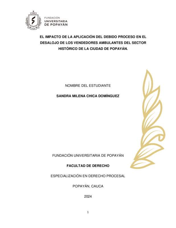 EL IMPACTO DE LA APLICACIÓN DEL DEBIDO PROCESO EN EL DESALOJO DE LOS VENDEDORES AMBULANTES DEL SECTOR HISTÓRICO DE LA CIUDAD DE POPAYÁN.