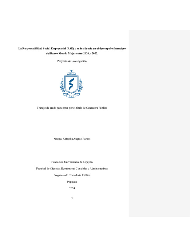 LA RESPONSABILIDAD SOCIAL EMPRESARIAL (RSE) Y SU INCIDENCIA EN EL DESEMPEÑO FINANCIERO DEL BANCO MUNDO MUJER ENTRE 2020 Y 2022