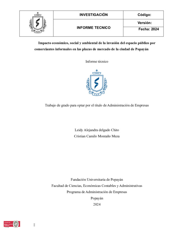 IMPACTO ECONÓMICO, SOCIAL Y AMBIENTAL DE LA INVASIÓN DEL ESPACIO PÚBLICO POR COMERCIANTES INFORMALES EN LAS PLAZAS DE MERCADO DE LA CIUDAD DE POPAYÁN