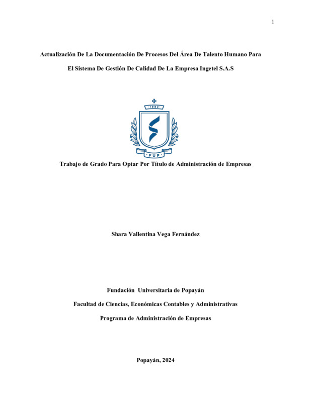 ACTUALIZACIÓN DE LA DOCUMENTACIÓN DE PROCESOS DEL ÁREA DE TALENTO HUMANO PARA EL SISTEMA DE GESTIÓN DE CALIDAD DE LA EMPRESA INGETEL S.A.S