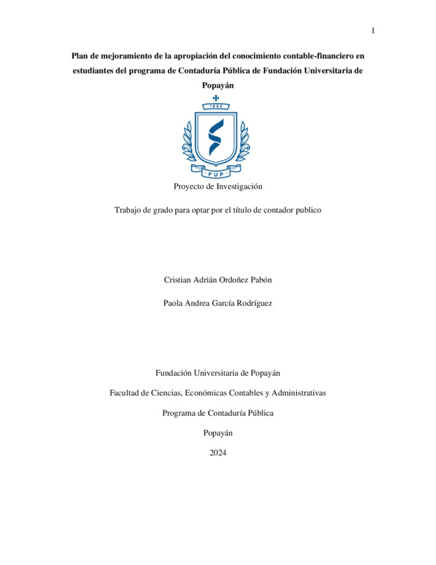 PLAN DE MEJORAMIENTO DE LA APROPIACIÓN DEL CONOCIMIENTO CONTABLE-FINANCIERO EN ESTUDIANTES DEL PROGRAMA DE CONTADURÍA PÚBLICA DE FUNDACIÓN UNIVERSITARIA DE POPAYÁN