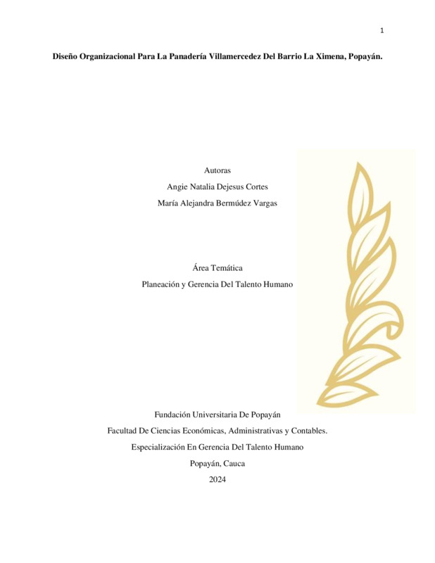DISEÑO ORGANIZACIONAL PARA LA PANADERÍA VILLAMERCEDEZ DEL BARRIO LA XIMENA, POPAYÁN