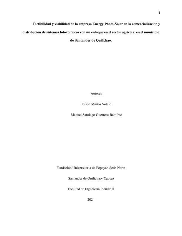 FACTIBILIDAD Y VIABILIDAD DE LA EMPRESA ENERGY PHOTO-SOLAR EN LA COMERCIALIZACIÓN Y DISTRIBUCIÓN DE SISTEMAS FOTOVOLTAICOS CON UN ENFOQUE EN EL SECTOR AGRÍCOLA, EN EL MUNICIPIO DE SANTANDER DE QUILICHAO