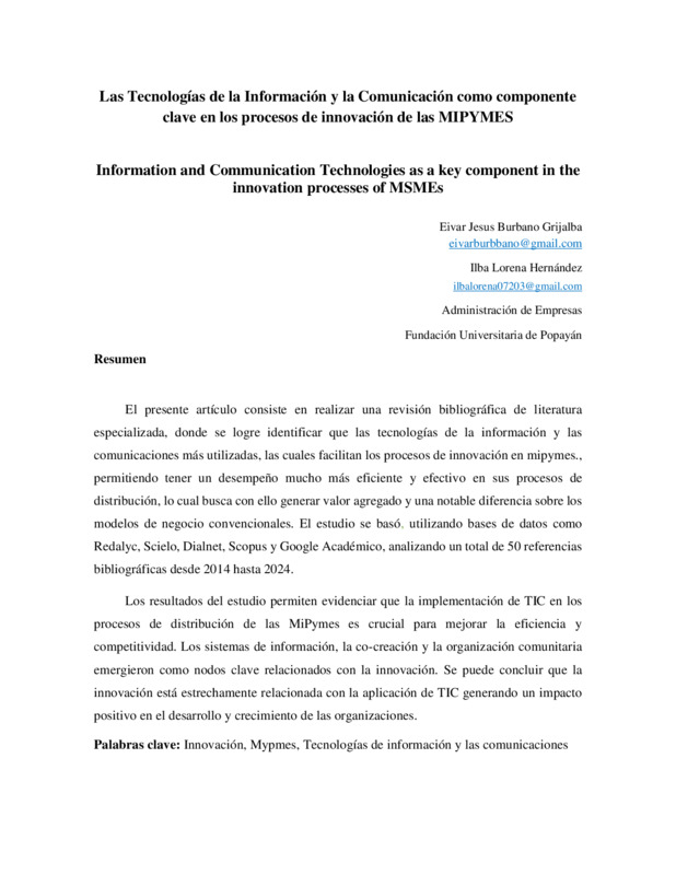 LAS TECNOLOGÍAS DE LA INFORMACIÓN Y LA COMUNICACIÓN COMO COMPONENTE CLAVE EN LOS PROCESOS DE INNOVACIÓN DE LAS MIPYMES