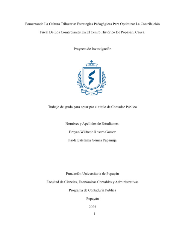 FOMENTANDO LA CULTURA TRIBUTARIA: ESTRATEGIAS PEDAGÓGICAS PARA OPTIMIZAR LA CONTRIBUCIÓN FISCAL DE LOS COMERCIANTES EN EL CENTRO DE POPAYÁN, CAUCA