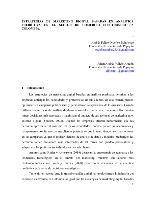 ESTRATEGIAS DE MARKETING DIGITAL BASADAS EN ANALÍTICA PREDICTIVA EN EL SECTOR DE COMERCIO ELECTRÓNICO EN COLOMBIA