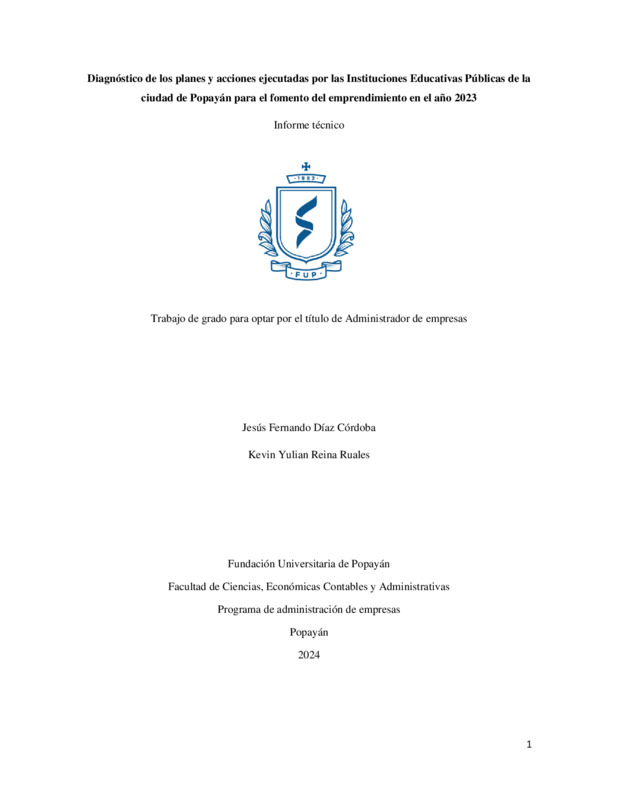 DIAGNÓSTICO DE LOS PLANES Y ACCIONES EJECUTADAS POR LAS INSTITUCIONES EDUCATIVAS PÚBLICAS DE LA CIUDAD DE POPAYÁN PARA EL FOMENTO DEL EMPRENDIMIENTO EN EL AÑO 2023