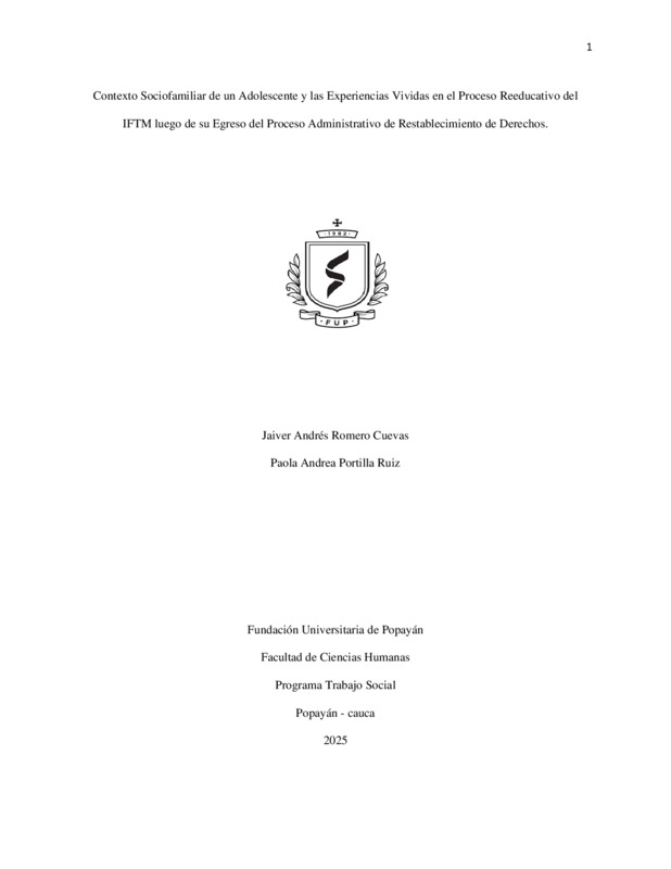 CONTEXTO SOCIOFAMILIAR DE UN ADOLESCENTE Y LAS EXPERIENCIAS VIVIDAS EN EL PROCESO REEDUCATIVO DEL IFTM LUEGO DE SU EGRESO DEL PROCESO ADMINISTRATIVO DE RESTABLECIMIENTO DE DERECHOS.