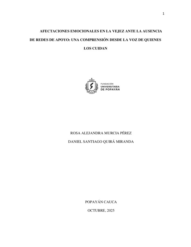 "AFECTACIONES EMOCIONALES EN LA VEJEZ ANTE LA AUSENCIA DE REDES DE APOYO: UNA COMPRENSIÓN DESDE LA VOZ DE QUIENES LOS CUIDAN"