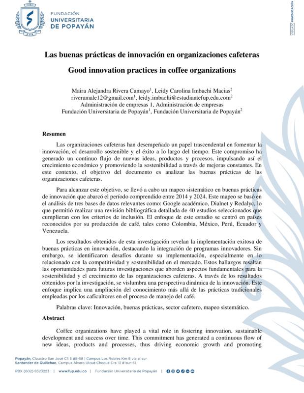 LAS BUENAS PRÁCTICAS DE INNOVACIÓN EN ORGANIZACIONES CAFETERAS