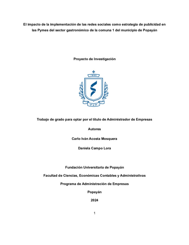 EL IMPACTO DE LA IMPLEMENTACIÓN DE LAS REDES COMO ESTRATEGIA DE PUBLICIDAD EN LAS PYMES DEL SECTOR GASTRONÓMICO DE LA COMUNA 1 DEL MUNICIPIO DE POPAYÁN