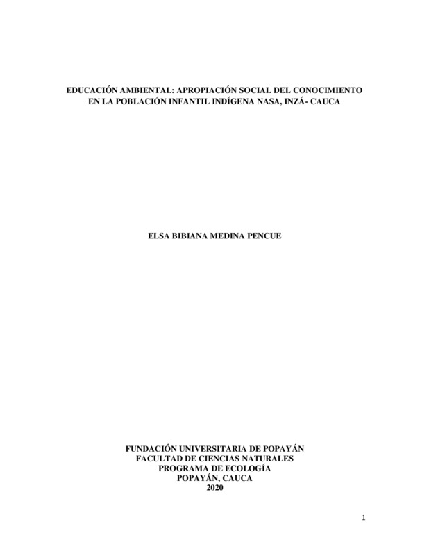 Parte de EDUCACIÓN AMBIENTAL: APROPIACIÓN SOCIAL DEL CONOCIMIENTO EN LA POBLACIÓN INFANTIL INDÍGENA NASA, INZÁ- CAUCA