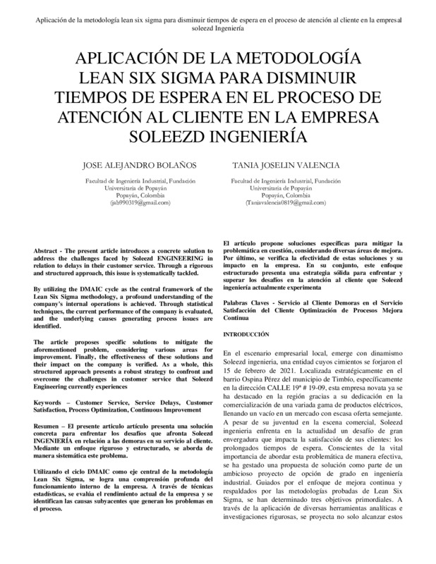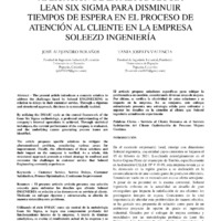 - APLICACIÓN DE LA METODOLOGÍA LEAN SIX SIGMA PARA DISMINUIR TIEMPOS DE ESPERA EN EL PROCESO DE ATENCIÓN AL CLIENTE EN LA EMPRESA SOLEEZD INGENIERÍA