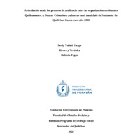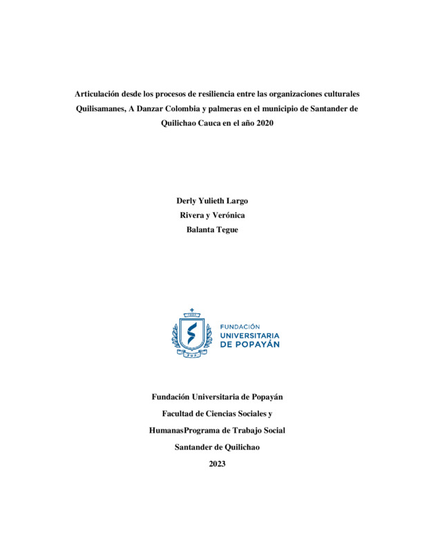 ARTICULACIÓN DESDE LOS PROCESOS DE RESILIENCIA ENTRE LAS RGANIZACIONES CULTURALES QUILISAMANES, A DANZAR COLOMBIA Y PALMERAS EN EL MUNICIPIO DE SANTANDER DE QUILICHAO CAUCA EN EL AÑO 2020