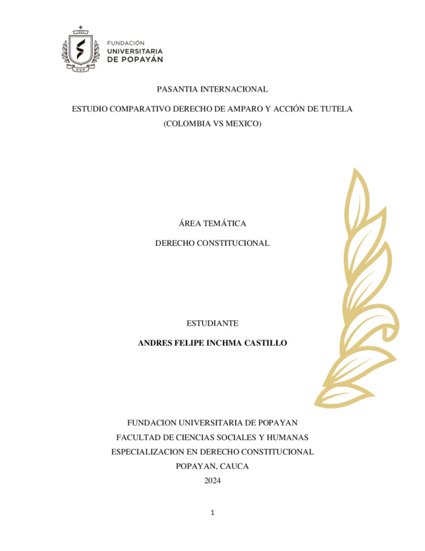- FUNDACION UNIVERSITARIA DE POPAYAN PROGRAMA DE ESPECIALIZACION EN DERECHO CONSTITUCIONAL