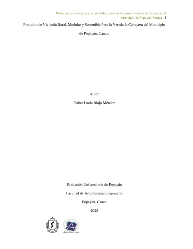 PROTOTIPO DE VIVIENDA RURAL, MODULAR Y SOSTENIBLE PARA LA VEREDA LA CABUYERA DEL MUNICIPIO DE POPAYÁN, CAUCA.