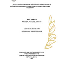 ¿DE QUÉ MANERA LA PRISIÓN PREVENTIVA Y LA PRESUNCIÓN DE INOCENCIA INCIDEN EN LOS ESTABLECIMIENTOS CARCELARIOS EN COLOMBIA?