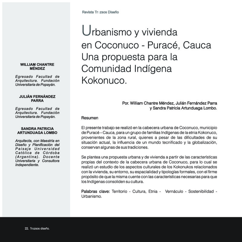 Parte de URBANISMO Y VIVIENDA EN COCONUCO – PURACÉ, CAUCA. UNA PROPUESTA PARA LA COMUNIDAD INDÍGENA KOKONUCO.
